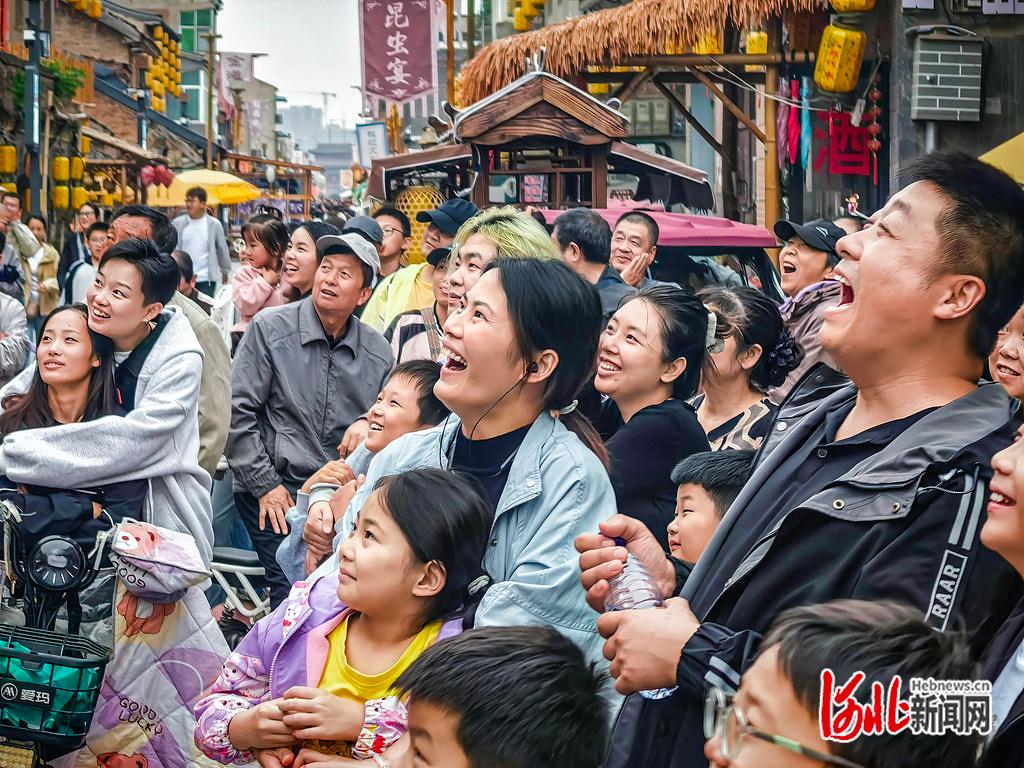 10月2日,游客在大名古城观看演出,乐享国庆、中秋双节假期。